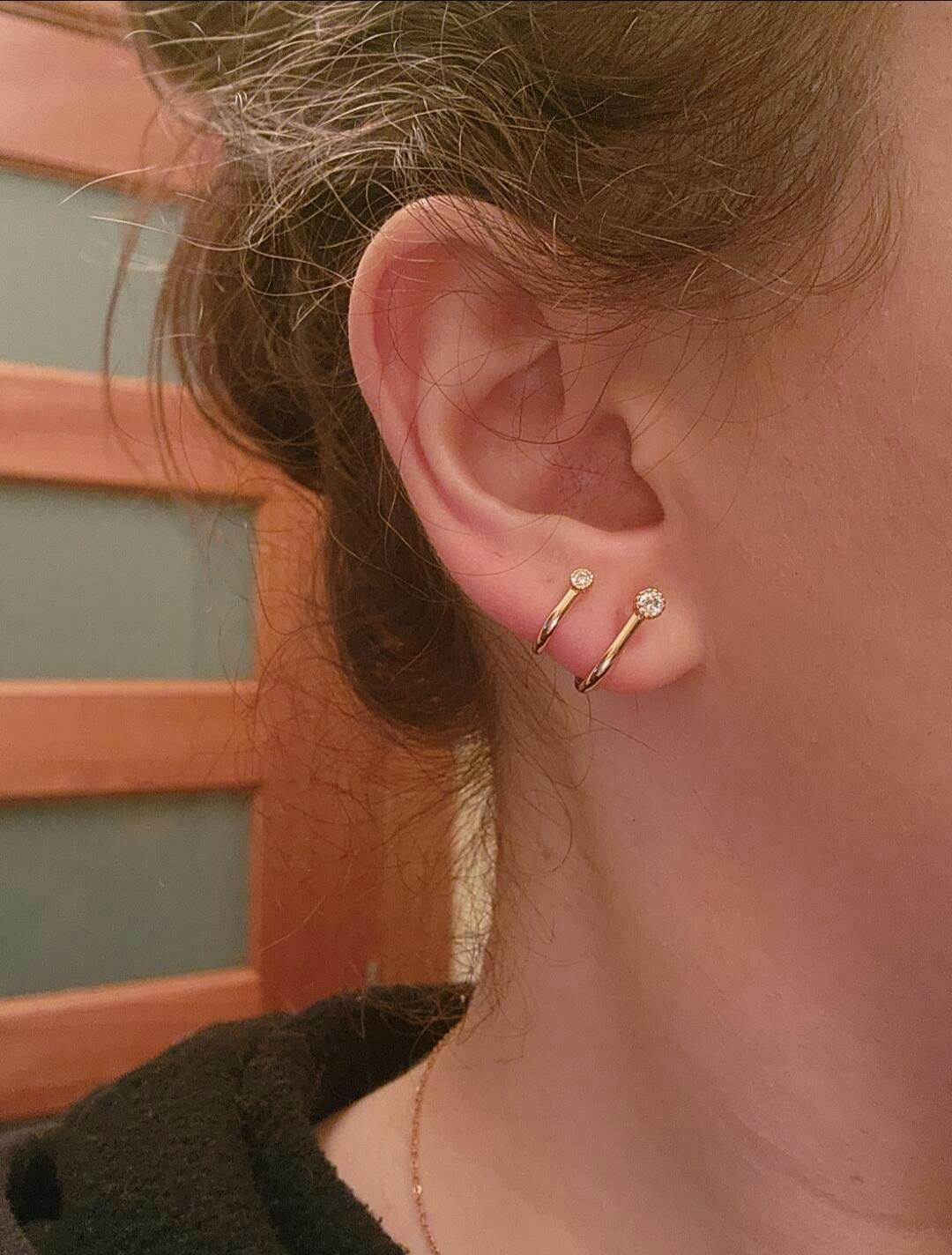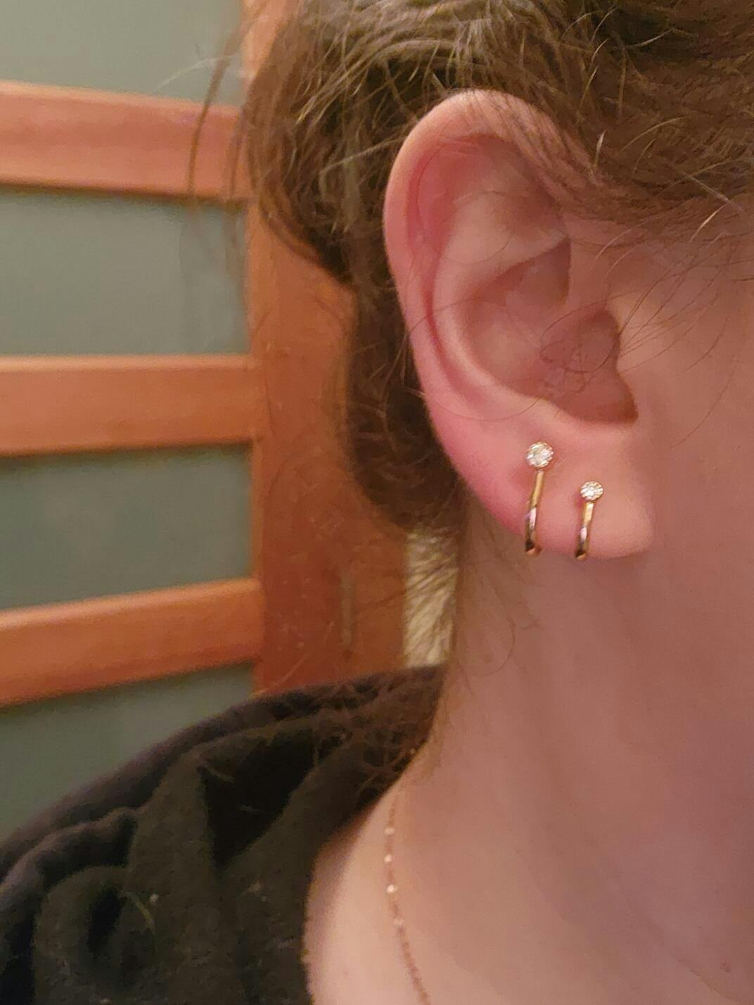 WEAR TIPS: The metal is malleable and can be adjusted to better fit your lobe. Gently bend the metal to adjust the shape of the hoops to your liking. Avoid bending the clip.