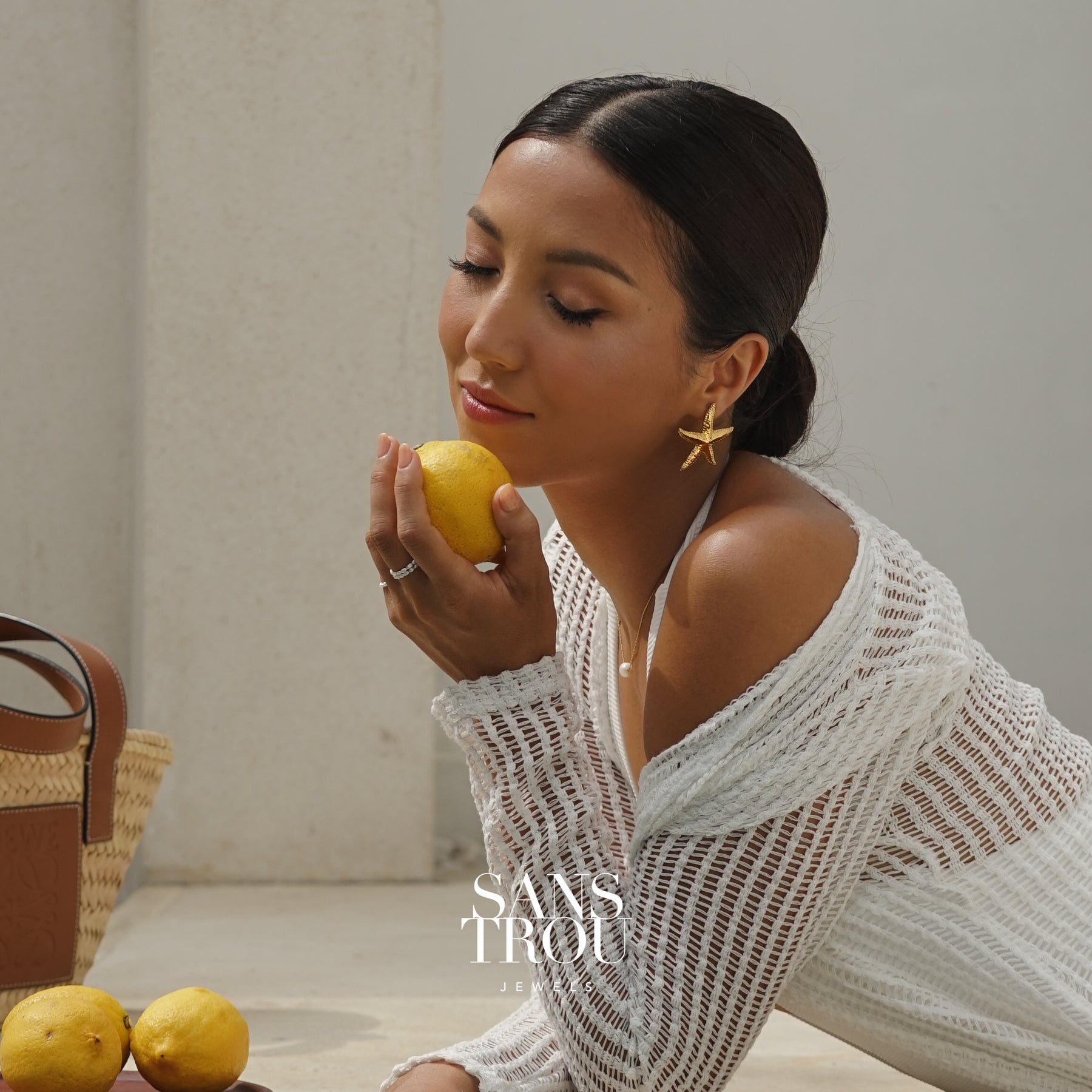 All orders ship in our eco-friendly, reduced-waste Minimal Packaging. This includes a recyclable mailing box, a jewellery care card, and a complimentary SANS TROU box or reusable travel pouch for storage.