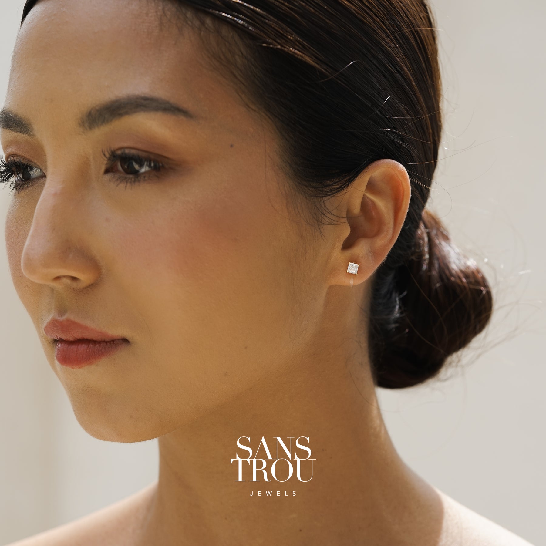 A timeless square cut stone stud. Now available in a delicate size that's perfectly suited for the everyday