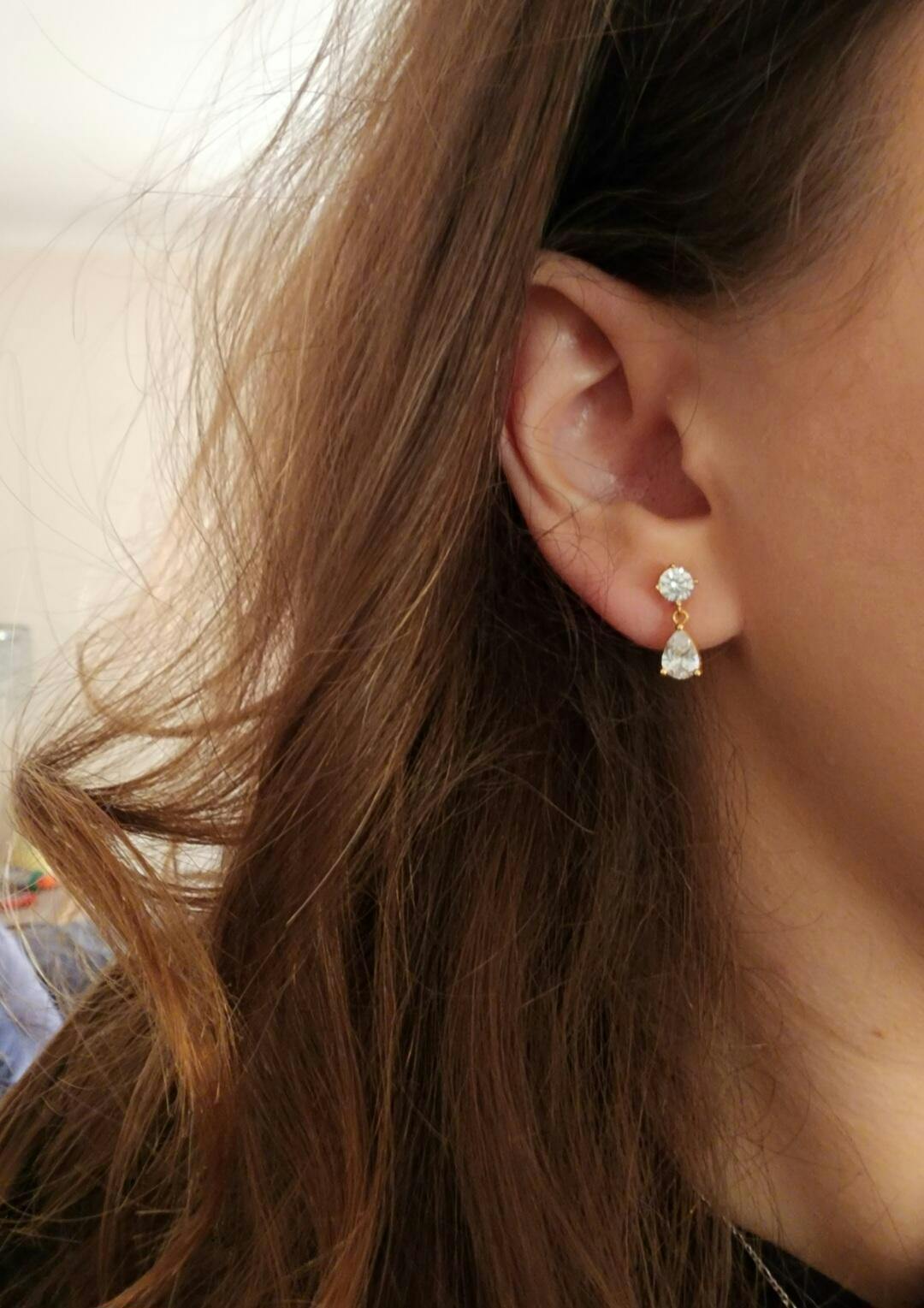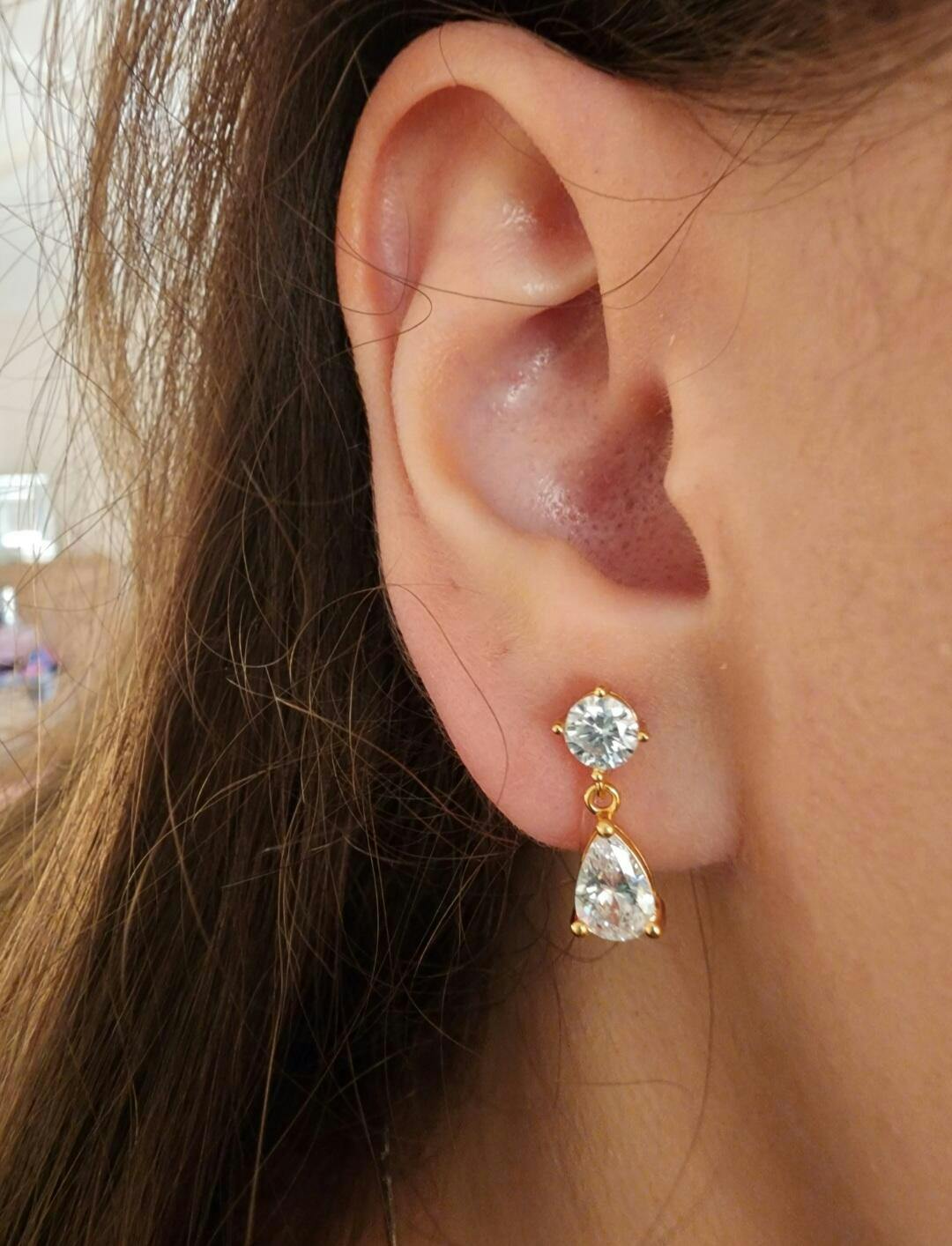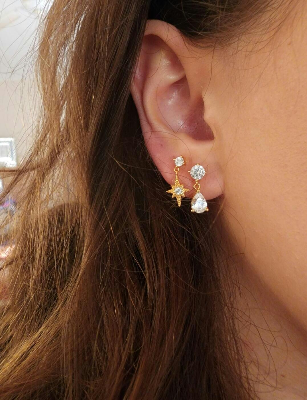 A dazzling double stone earring. Versatile, chic and perfect for adding a touch of glamour to any occasional look.