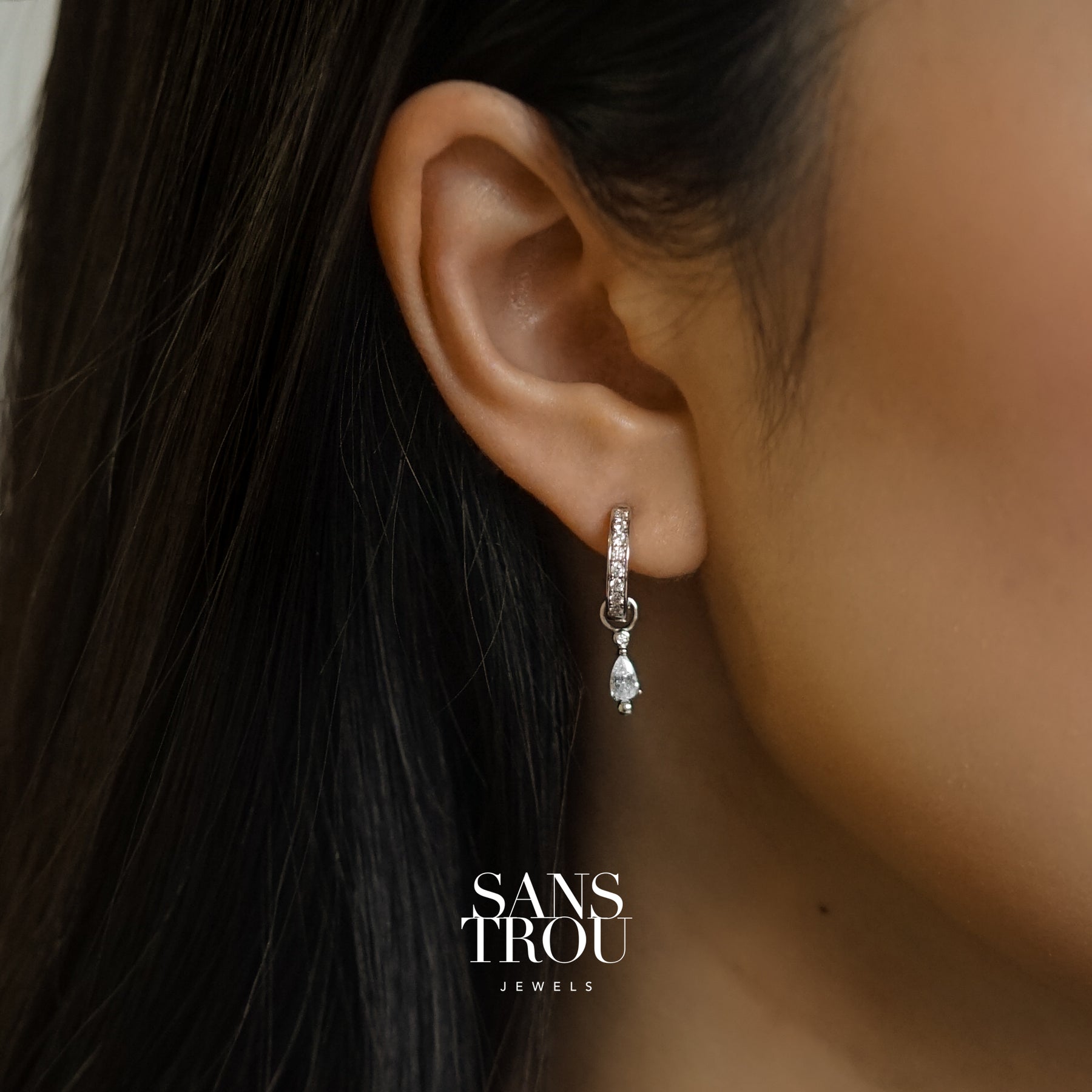 A brilliant, pear-shaped stone, this charm adds instant glamour and a touch of sophistication to any huggie hoop.