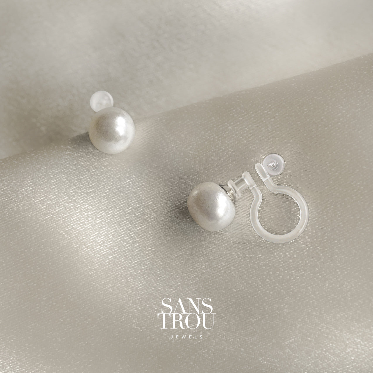 Kari Petite Pearl Clip-On Stud Earrings - Silver - Spring Clip