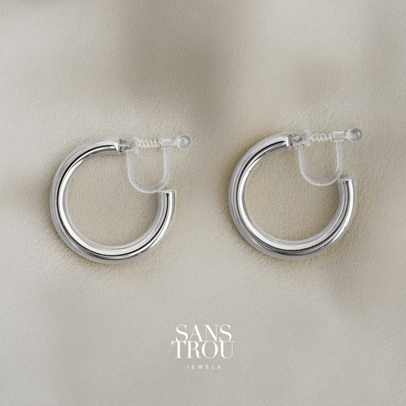 Alia Clip-On Hoop Earrings - Silver - Spring Clip