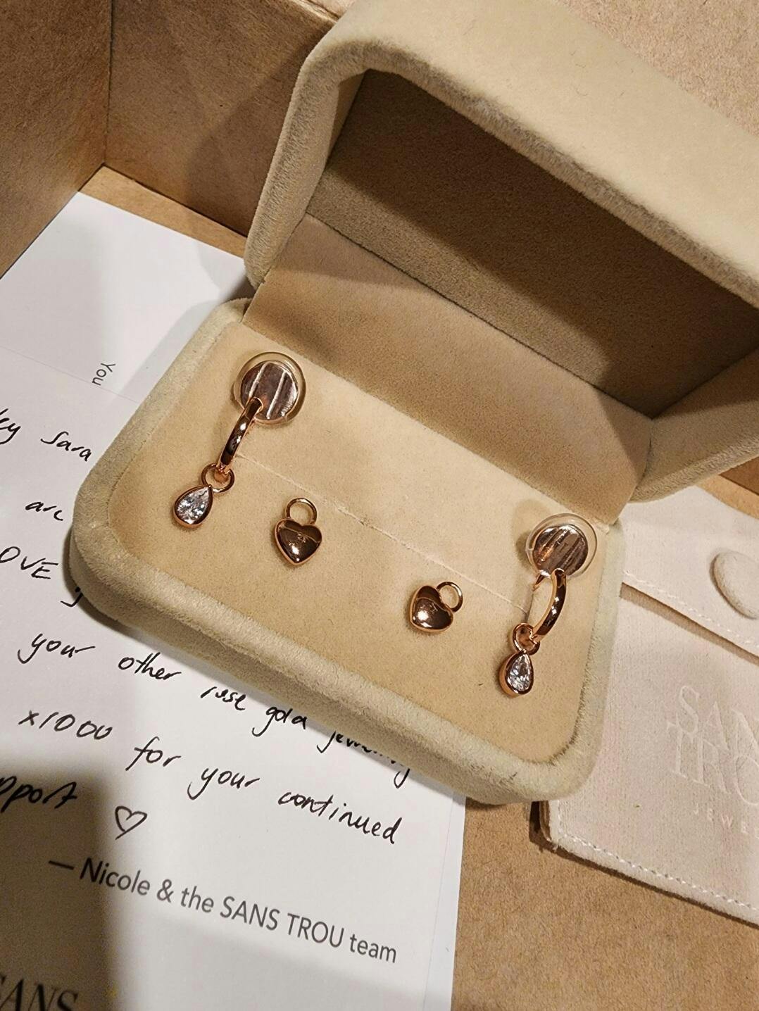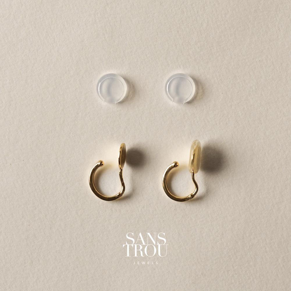 These earrings are amazing and one of my favourites from Sans trou! It's nothing like those old school painful clip ons. I was almost not going to purchase due to the fact that I have big keloid bumps on the back of my left ear, so I was worried the wider padded backing wouldn't work for me. I was pleasantly surprised that it works as the back is adjustable and stays in place all day long with absolutely no discomfort at all! I love these and plan on getting them in all colours! Not to mention the fact that they are customisable with all the different charms. Such a genius idea, love them! 😍