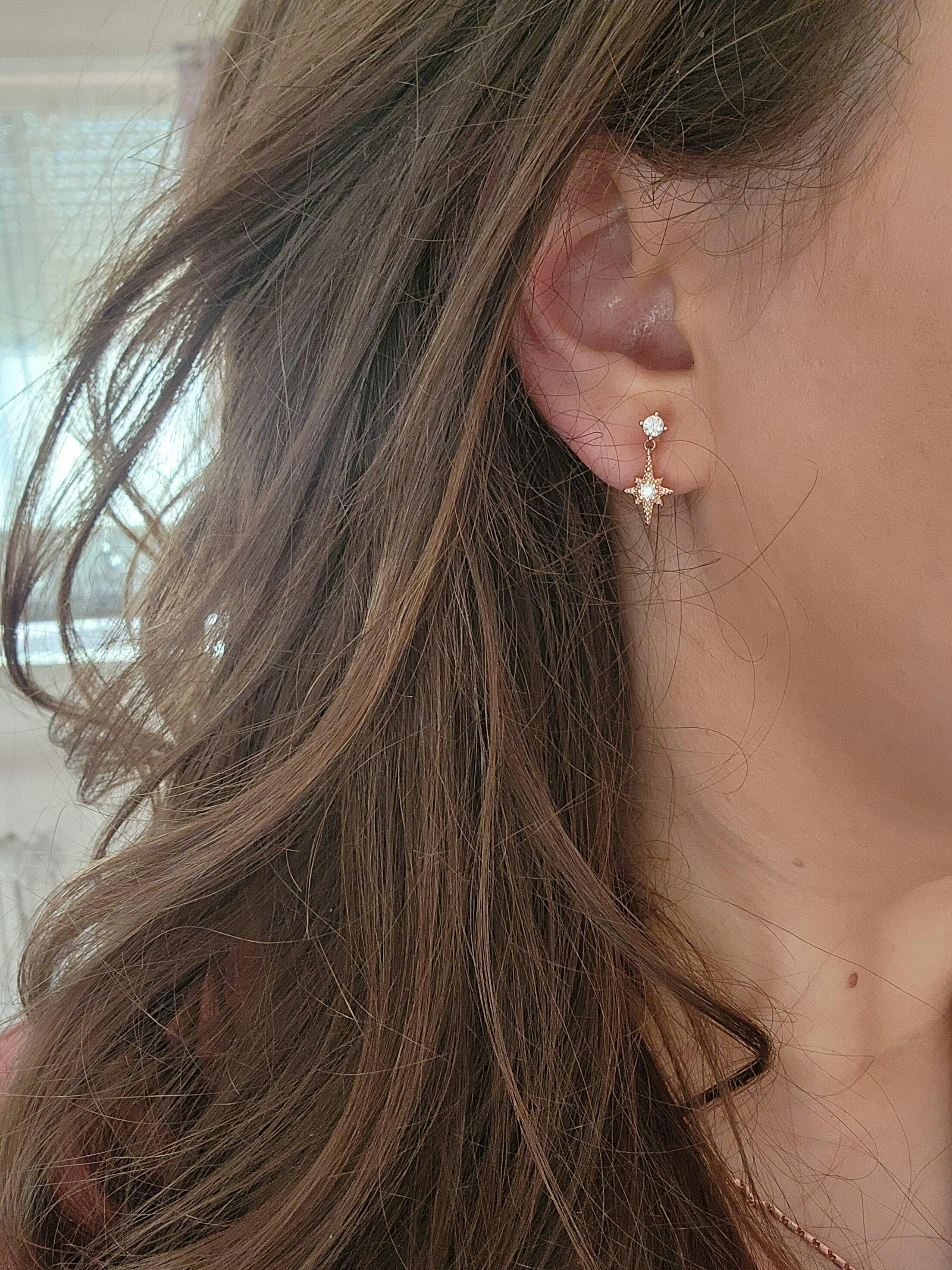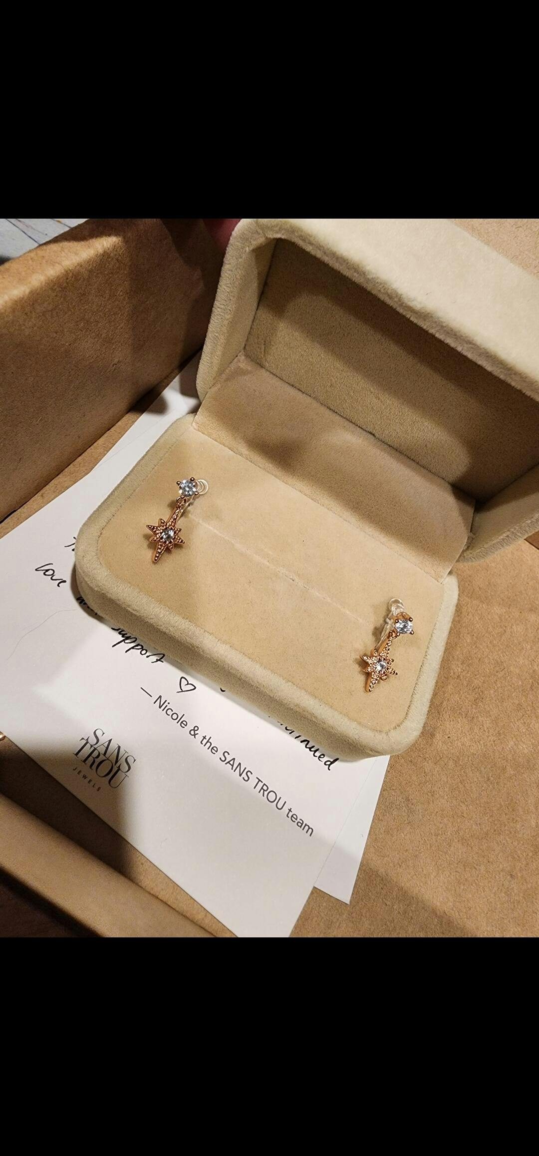Our best-selling star & moon duo Estella, now comes in a starry pair. Shine bright with these dainty celestial star clip-ons.