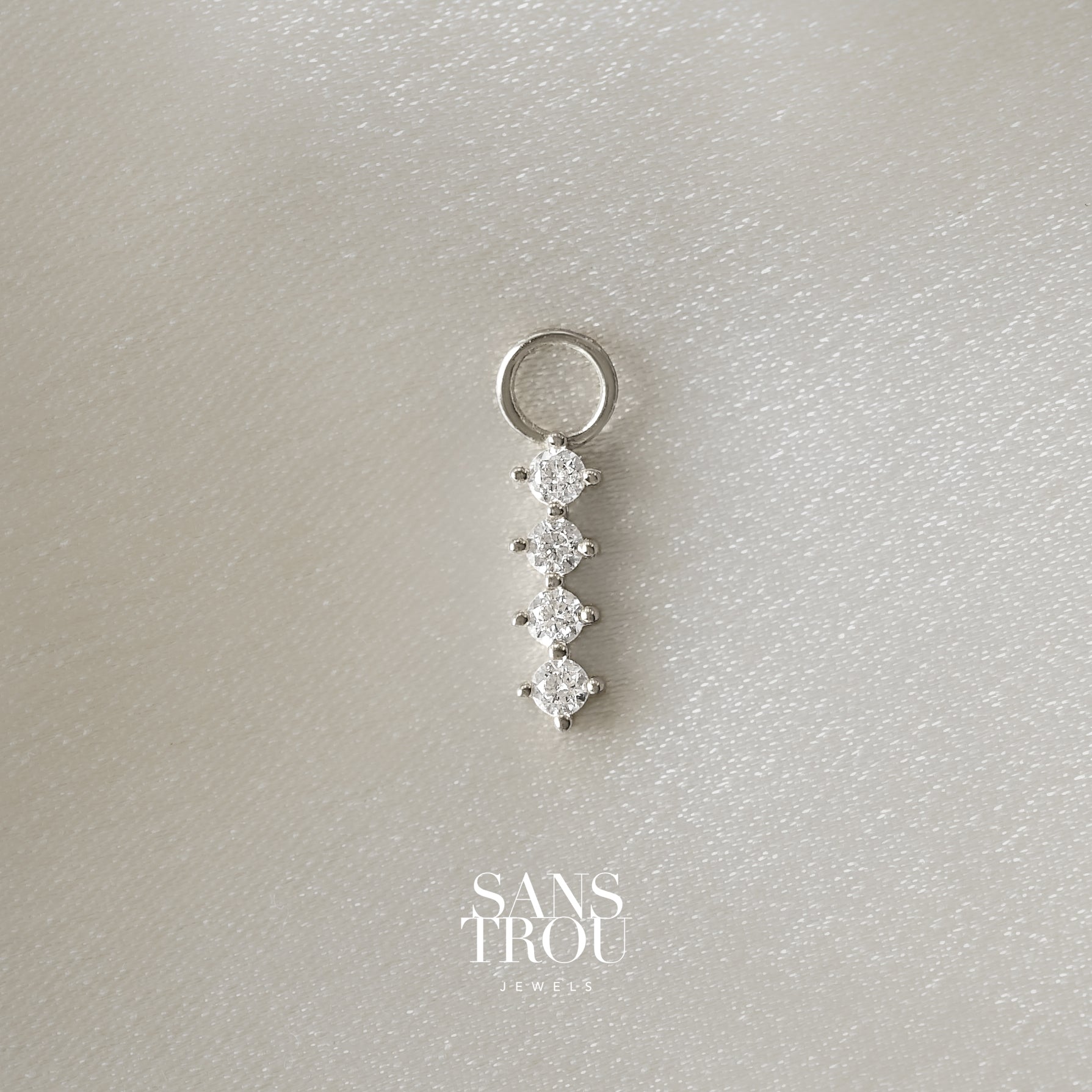 A dazzling cascade of sparkle. Add this four-stone charm to your favourite huggie hoop for a touch of linear elegance and instant glamour.