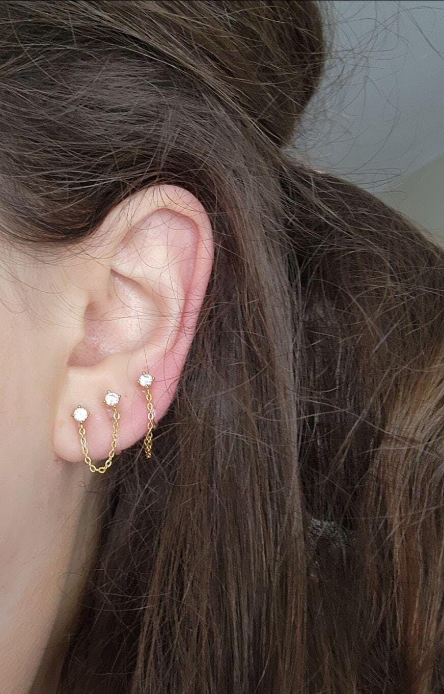 Linked by a dainty chain, these double stud clip-ons are modern and chic with a little bit of edge.
